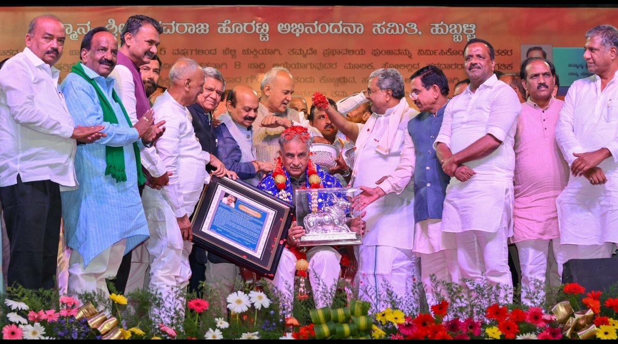 ಸಭಾಪತಿಗಳಾದ ಬಸವರಾಜ್ ಹೊರಟ್ಟಿ ಯವರನ್ನು ಪಕ್ಷಾತೀತವಾಗಿ ಇಂದು ಸನ್ಮಾನಿಸಲಾಗಿದೆ. ಎಲ್ಲ ಪಕ್ಷದವರೊಂದಿಗೆ ಉತ್ತಮ ಬಾಂಧವ್ಯ ಹೊಂದಿರುವ ಹೊರಟ್ಟಿಯವರು ಅಜಾತಶತ್ರು. ನೇರ ನುಡಿಯ ದಿಟ್ಟ ವ್ಯಕ್ತಿತ್ವದ ರಾಜಕಾರಣಿಯಾಗಿದ್ದಾರೆ. 1980 ರಲ್ಲಿ ವಿಧಾನಪರಿಷತ್ತಿನ ಶಾಸಕರಾಗಿದ್ದ ಇವರೊಂದಿನ ನನ್ನ ಸ್ನೇಹ ನಾಲ್ಕು ದಶಕಗಳದ್ದು. ಆಡಂಬರವಿಲ್ಲದ ಸ್ನೇಹಜೀವಿಯಾಗಿರುವ ಹೊರಟ್ಟಿಯವರು ಶಿಕ್ಷಕರ ಕ್ಷೇತ್ರದಿಂದ ಎಂಟು ಬಾರಿ ಶಾಸಕರಾಗಿದ್ದು, ಶಿಕ್ಷಕರ ಸಮಸ್ಯೆಗಳಿಗೆ ಧ್ವನಿಯಾಗಿದ್ದಾರೆ ಎಂದರು.