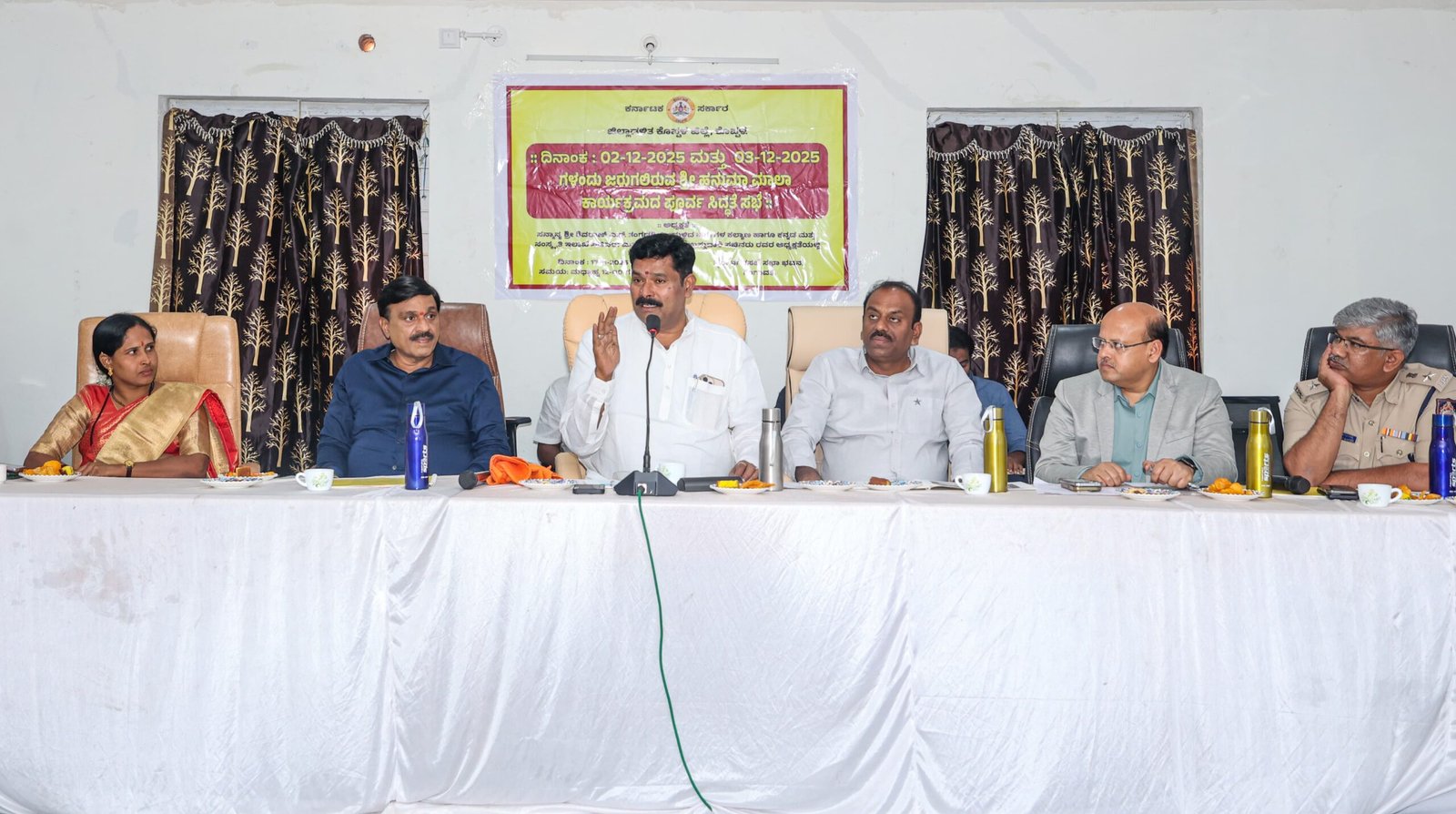 ಹನುಮಮಾಲಾ ವಿಸರ್ಜನೆ ಹಿನ್ನೆಲೆಯಲ್ಲಿ ಗಂಗಾವತಿ ಮುನ್ಸಿಪಾಲಿಟಿ ಸಭಾಂಗಣದಲ್ಲಿ ನಡೆದ ಸಭೆಯಲ್ಲಿ ಮಾತನಾಡಿದ ಸಚಿವರು, ಡಿ.2 ಮತ್ತು ಡಿ.3ರಂದು ನಡೆಯಲಿರುವ ಕಾರ್ಯಕ್ರಮದಲ್ಲಿ ರಾಜ್ಯದ ನಾನಾ ಜಿಲ್ಲೆಗಳ ಭಕ್ತರು ಹನುಮಮಾಲೆ ಧರಿಸಿ ತಿಂಗಳವರೆಗೆ ಕಠಿಣ ವೃತ ಕೈಗೊಂಡು ಮಾಲೆಯ ವಿಸರ್ಜನೆಗಾಗಿ ಅಂಜನಾದ್ರಿ ಬೆಟ್ಟಕ್ಕೆ ಆಗಮಿಸಲಿದ್ದಾರೆ. ಇಡೀ ಗಂಗಾವತಿಯಲ್ಲಿ ಪೊಲೀಸರು ಹದ್ದಿನ ಕಣ್ಣಿಡಬೇಕು. ಅಂಜನಾದ್ರಿ ಸಂಪರ್ಕಿಸುವ ಕಾರಟಗಿ, ಕನಕಗಿರಿ, ಕೊಪ್ಪಳ, ಹೊಸಪೇಟೆ ರಸ್ತೆ ಸೇರಿದಂತೆ ಹಲವೆಡೆ ಚೆಕ್ಪೋಸ್ಟ್ ನಿರ್ಮಾಣ ಮಾಡಬೇಕು. ಇಡೀ ತಾಲ್ಲೂಕಿನಲ್ಲಿ ಪೊಲೀಸರು ನಿರಂತರವಾಗಿ ಗಸ್ತು ತಿರುಗಬೇಕು. ಅನುಮಾನಾಸ್ಪದ ವ್ಯಕ್ತಿಗಳು ಕಂಡು ಬಂದರೆ ಮುಲಾಜಿಲ್ಲದೆ, ವಶಕ್ಕೆ ಪಡೆಯಿರಿ ಎಂದು ತಾಕೀತು ಮಾಡಿದರು.