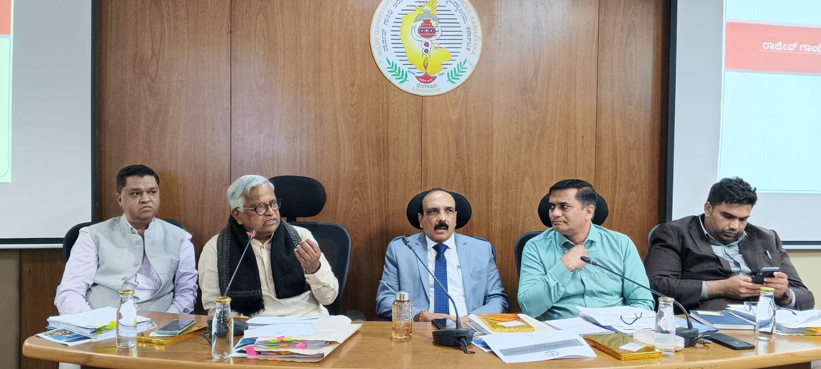 ಸಭೆಯಲ್ಲಿ ರಾಜೀವ್ ಗಾಂಧಿ ಆರೋಗ್ಯ ವಿಜ್ಞಾನಗಳ ವಿಶ್ವವಿದ್ಯಾಲಯದ ಕುಲಪತಿ ಡಾ. ಭಗವಾನ್ ಬಿ.ಸಿ., ಕುಲಸಚಿವ ಸಿ. ಅರ್ಜುನ್ ಒಡೆಯರ್, ಕುಲಸಚಿವ (ಮೌಲ್ಯಮಾಪನ) ಡಾ. ರಿಯಾಜ್ ಬಾಷಾ, ಕನ್ನಡ ಅಭಿವೃದ್ಧಿ ಪ್ರಾಧಿಕಾರದ ಕಾರ್ಯದರ್ಶಿ ಡಾ. ಸಂತೋಷ ಹಾನಗಲ್ಲ, ಆಪ್ತ ಕಾರ್ಯದರ್ಶಿ ಟಿ.ಎಸ್. ಫಣಿಕುಮಾರ್, ವೈದ್ಯರಾದ ಡಾ ಸಿ.ಎ ಕಿಶೋರ್ ಮತ್ತಿತರರು ಹಾಜರಿದ್ದರು.
