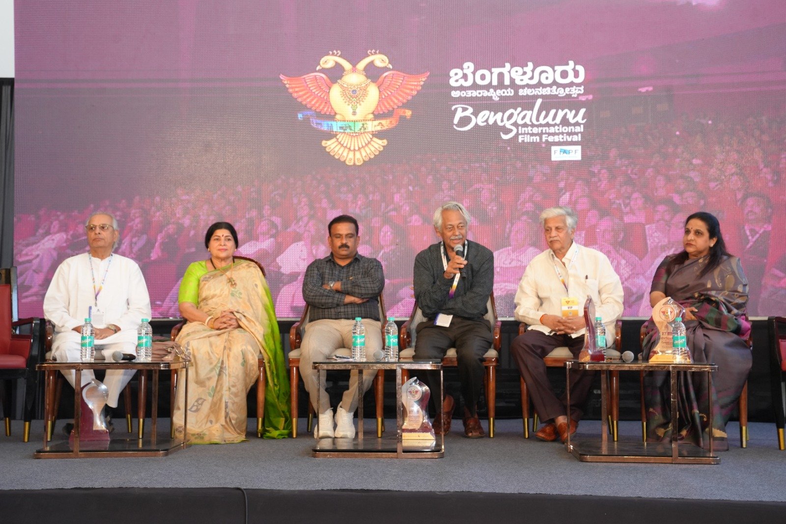 ಬೆಂಗಳೂರು: ಬೆಂಗಳೂರು ಅಂತಾರಾಷ್ಟ್ರೀಯ ಚಿತ್ರೋತ್ಸವದ ಕೊನೆಯ ದಿನವಾದ ಶುಕ್ರವಾರ, ಕನ್ನಡ ಚಿತ್ರರಂಗದಲ್ಲಿ 50 ವರ್ಷಗಳನ್ನು ಪೂರೈಸಿರುವುದರ ಜೊತೆಗೆ ಕನ್ನಡ ಚಿತ್ರರಂಗಕ್ಕೆ ಗಣನೀಯ ಕೊಡುಗೆ ನೀಡಿದ ಗಣ್ಯರನ್ನು ‘ಸುವರ್ಣ ಸಂಭ್ರಮʼ ಎಂಬ ಹೆಸರಿನ ಕಾರ್ಯಕ್ರಮದಲ್ಲಿ ಗೌರವಿಸಲಾಯಿತು.