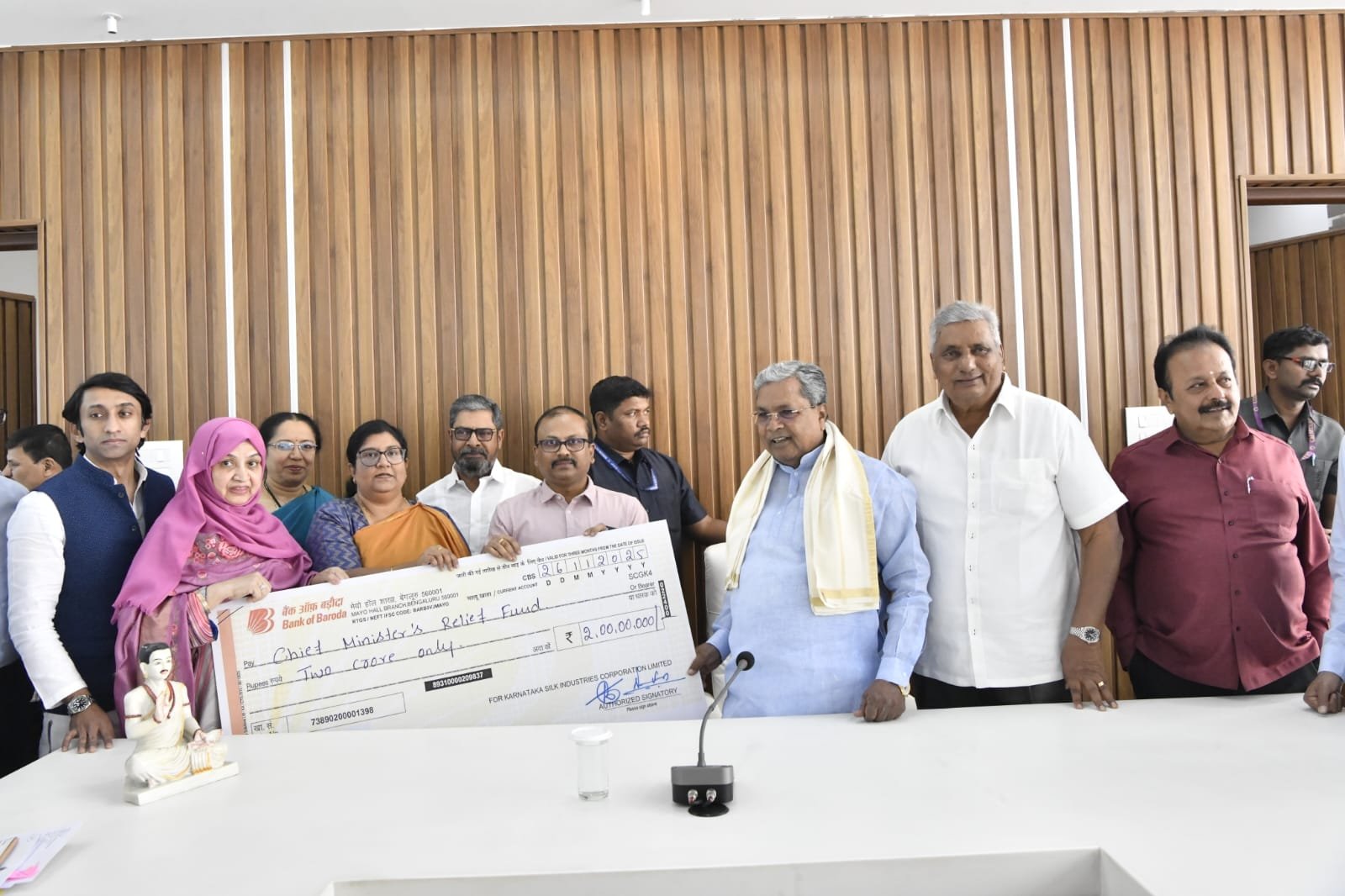 ಬೆಂಗಳೂರು: ಕರ್ನಾಟಕ ರೇಷ್ಮೆ ಉದ್ಯಮಗಳ ನಿಗಮ ನಿಯಮಿತ ವತಿಯಿಂದ 30 ಕೋಟಿ 34 ಲಕ್ಷದ 78 ಸಾವಿರದ 500 ರೂಪಾಯಿ ಮೊತ್ತದ ಡಿವಿಡೆಂಡ್ ನ್ನು ಮುಖ್ಯಮಂತ್ರಿಗಳ ಪರಿಹಾರ ನಿಧಿಗೆ ಇಂದು ನೀಡಲಾಯಿತು.