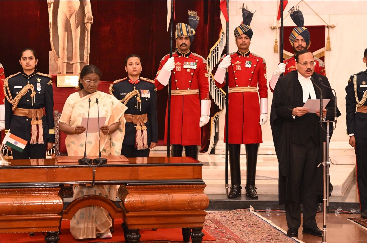 ರಾಷ್ಟ್ರಪತಿ ಭವನದಲ್ಲಿ ನಡೆದ ಪ್ರಮಾಣ ವಚನ ಸ್ವೀಕಾರ ಸಮಾರಂಭದಲ್ಲಿ ರಾಷ್ಟ್ರಪತಿ ದ್ರೌಪತಿ ಮುರ್ಮು ಅವರು ನ್ಯಾಯಮೂರ್ತಿ ಸೂರ್ಯಕಾಂತ್ ಅವರಿಗೆ ಪ್ರತಿಜ್ಞಾ ವಿಧಿ ಬೋಧಿಸಿದರು.