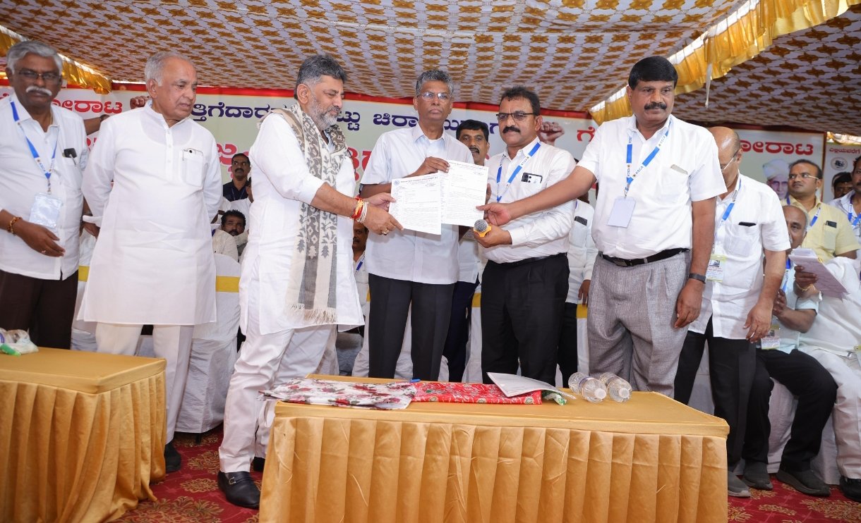 ಬಾಕಿ ಬಿಲ್ ಬಿಡುಗಡೆಗೆ ಆಗ್ರಹಿಸಿ ಬೆಂಗಳೂರಿನ ಫ್ರೀಡಂ ಪಾರ್ಕ್ ನಲ್ಲಿ ಪ್ರತಿಭಟನಾ ನಿರತರಾಗಿದ್ದ ಕರ್ನಾಟಕ ರಾಜ್ಯ ಗುತ್ತಿಗೆದಾರರ ಸಂಘದವರನ್ನು ಉದ್ದೇಶಿಸಿ ಡಿಸಿಎಂ ಡಿ ಕೆ ಶಿವಕುಮಾರ್ ಅವರು ಶುಕ್ರವಾರ ಮಾತನಾಡಿದರು.
