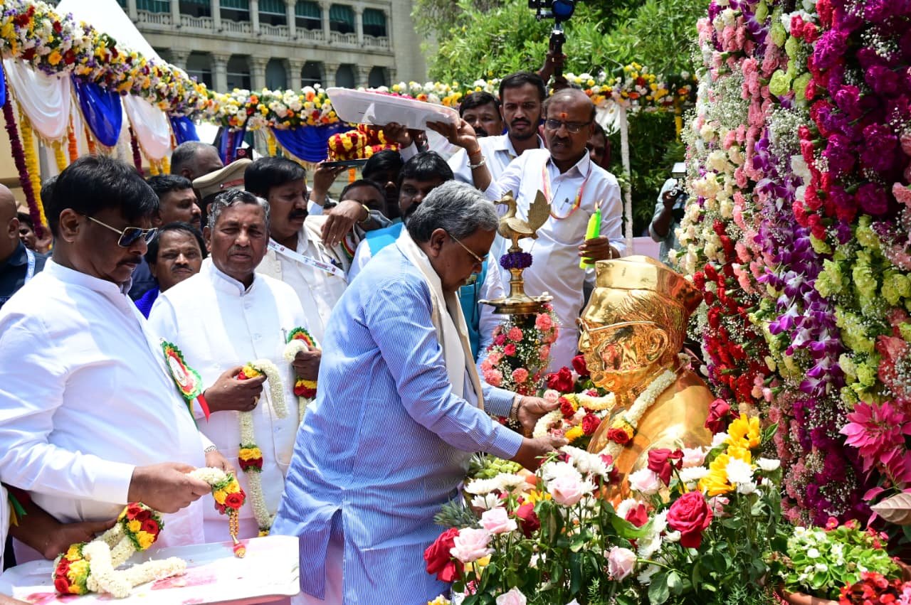 ಬೆಂಗಳೂರು: ಸಮಾಜ ಕಲ್ಯಾಣ ಇಲಾಖೆಯ ವತಿಯಿಂದ ಇಂದು ಹಮ್ಮಿಕೊಳ್ಳಲಾಗಿದ್ದ ಹಸಿರು ಕ್ರಾಂತಿಯ ಹರಿಕಾರ, ರಾಷ್ಟ್ರ ನಾಯಕ, ಭಾರತದ ಮಾಜಿ ಉಪ ಪ್ರಧಾನಿ ಡಾ. ಬಾಬು ಜಗಜೀವನ ರಾಂ ರವರ 119 ನೇ ಜನ್ಮದಿನಾಚರಣೆ ಪ್ರಯುಕ್ತ ವಿಧಾನಸೌಧದ ಪಶ್ಚಿಮ ದ್ವಾರದಲ್ಲಿರುವ ಡಾ.ಬಾಬು ಜಗಜೀವನ ರಾಂ ರವರ ಪ್ರತಿಮೆಗೆ ಮುಖ್ಯಮಂತ್ರಿ ಸಿದ್ದರಾಮಯ್ಯ ಅವರು ಮಾಲಾರ್ಪಣೆ ಮಾಡಿದರು.