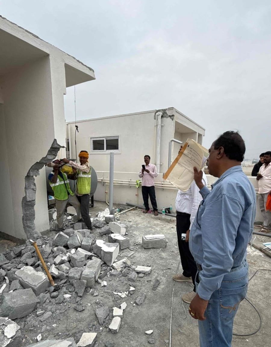 30x 50 ನಿವೇಶನದಲ್ಲಿ ತಳ ಮಹಡಿ, ನೆಲ ಮಹಡಿ, ಒಂದು ಮತ್ತು ಎರಡನೇ ಮಹಡಿ ಕಟ್ಟಡ ನಿರ್ಮಾಣಕ್ಕೆ ನಕ್ಷೆ ಮಂಜೂರಾತಿ ಪಡೆದಿದ್ದು, ಹೆಚ್ಚುವರಿಯಾಗಿ ಮೂರು ಮತ್ತು ನಾಲ್ಕನೇ ಮಹಡಿಯನ್ನು ನಿರ್ಮಿಸಿರುವುದು ಕಂಡು ಬಂದಿರುತ್ತದೆ. ಹೆಚ್ಚುವರಿಯಾಗಿ ನಿರ್ಮಾಣಗೊಂಡಿರುವ ಕಟ್ಟಡದ ಭಾಗವನ್ನು ತೆರವುಗೊಳಿಸುವ ಕಾರ್ಯ ಪ್ರಗತಿಯಲ್ಲಿರುತ್ತದೆ.